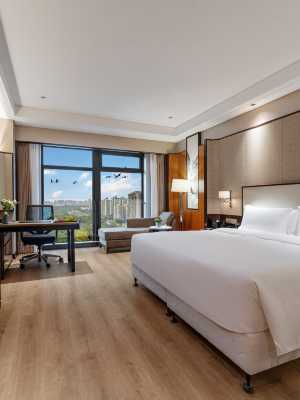 飯店客房擁有獨立控制的冷暖空調系統,配有電子門鎖、電子保險箱、迷你吧、獨立衛生間盆浴及淋浴設備。商務單間特配桑拿房和按摩浴缸;豪華套房配有圓弧型觀景客廳;躍層式套房更為你提供商務會客及休閒的便利;所有客房配有人性化時尚辦公桌,讓您在辦公同時享受舒適。