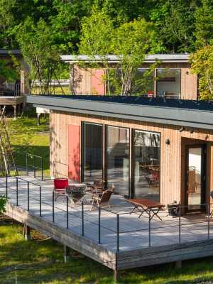 本館前即是北海道球場,可與家人與親朋一起享受篝火的樂趣!還可在寬敞的木製露台,享受BBQ燒烤的樂趣! null