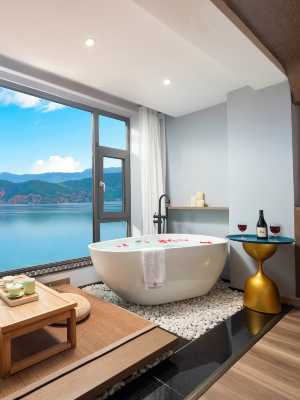 房型特色:所有湖景房均為一線湖景房,均為正面面對瀘沽湖180度無死角的觀湖效果。房間同時正對神祕且威嚴的格姆女神山,每個清晨與傍晚都能看到不一樣的朝與暮,不一樣的火燒雲。在晴朗的夜晚可看到美麗絢爛的高原星空,數不完的星星和連不完的星座。視野開闊,湖景一覽無餘,全房地暖,獨立空調,迷你冰箱,高升燒水壺,茶桌茶具及冰島普洱茶體驗包,智能馬桶,電動窗簾,浴缸,高檔床墊,高端布草,一次性馬桶套,一次性浴缸套,高檔一次性洗漱用品,天貓精靈,無線WIFI,一客一換。