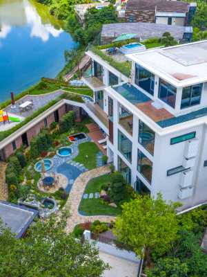 台山瀾悅·湖畔院子,作為集休閒度假與高端體驗於一體的綜合性別墅,瀾悅湖畔院子以“15房15泡池”的配置為基礎,融合私享富硒溫泉與多元化娛樂設施,台山瀾悅湖畔院子度假別墅是您的優質之選!這裡集每間房私人泡池、富硒溫泉、超大園林庭院景觀、室內高爾夫、星空恆溫泳池、全屋智能於一體,配備15個私人泡池和花園專屬3個露天泡池,娛樂設施齊全,滿足休閒度假、朋友聚會、公司團建、商務接待等多元需求,讓您享受專屬放鬆時光。 作為一處融合自然景觀與高端設施的度假居所,頤和瀾悅湖畔院子度假別墅,以其豪華的設計、完善的配套及舒適的環境,成為家庭休閒、朋友聚會、公司團建或商務洽談的理想選擇。別墅外觀設計現代且時尚,無論是夜晚燈光映照下的高雅氛圍,還是白天陽光中通透明亮的質感,都展現出高端度假居所的獨特魅力。建築主體以白色為主色調,搭配大面積落地窗玻璃,既保證了室內的採光,又讓建築外觀顯得通透明亮。從不同視角看,別墅或在深藍色夜空下寧靜優雅,或在湛藍天空中清新明亮,周圍庭院設計更是精心考量:石板小徑蜿蜒穿過綠植與景觀石,裝飾燈與修剪整齊的樹木、草坪共同營造出自然與人工交融的美感。