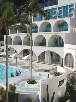 飯店帶有濃郁的西班牙建築風格及亞熱帶園林景觀,擁有各類海景豪華客房、套房和10幢豪華別墅。飯店客房面積達60平方公尺以上,每間客房均帶有超大觀海陽台。圓您躺在床上看日出的浪漫夢想。足不出戶便能將海灘的迷人海岸線與飯店的亞熱帶園林景觀盡收眼底。