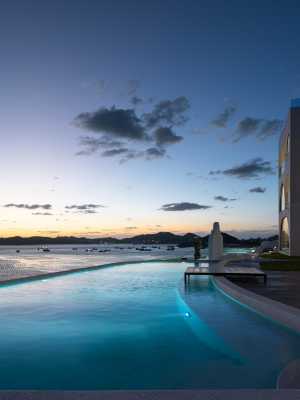 無邊露天泳池全天開放。漂浮在泳池水面,日出光影映出波光粼粼的折線,波紋搖盪推開生活的細枝末節。正午在泳池中自由穿梭,擺脫陽光的燥熱。傍晚深情相擁落日與晚風,清風拂面,此刻歲月靜好。