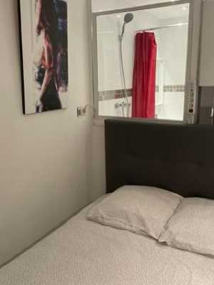 這家空調公寓配有1間臥室、起居室、帶冰箱和咖啡機的設施齊全的廚房以及1間帶淋浴設施的浴室。這家公寓也擁有休息區和1間浴室。