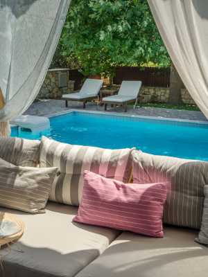 優雅舒適的別墅位於島中心,坐落在橄欖樹田間的大花園內。它位於扎金索斯州寧靜的加拉羅村,可容納8人。公寓設有帶客廳的開放式區域、帶烤麵包機、洗碗機、電熱水壺、微波爐、冰箱、咖啡機和餐桌的設備齊全的廚房、4間臥室、一間帶雙人床的主臥室以及帶淋浴的連接浴室、臥室配有一張雙人床,另一間臥室配有兩張單人床,以及一間帶轉角浴缸的浴室。陽台享有寧靜的花園和泳池景觀,還可直接通往私人游泳池。幾步之遙即可到達另一間臥室,配有一張雙人床、一張沙發床和一間帶淋浴的浴室。門帶你到美麗的花園。額外的福利是戶外燒烤。在它旁邊,您會發現一個額外的房間,配有衛生間、水槽和櫥櫃,在準備飯菜時非常有用,還有一張額外的餐桌。這家住宿距離扎金索斯港有15公里,距離拜占庭博物館有11公里。
