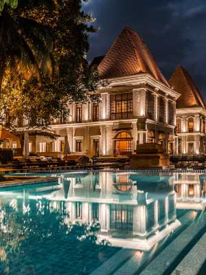 果阿君悅飯店是一家位於果阿北部班博里海灣靜謐水濱的豪華度假和水療勝地,距離首都潘那吉僅 7 公里,距離 Dabolim 機場 25 公里。 該度假村的設計靈感來自於一座 17 世紀的印度-葡萄牙宮殿,是一處由繽紛色彩、熱帶花園和蔥綠草坪組成並佔地高達 28 英畝的度假和水療勝地。度假村的 314 間客房面積從 50 到 200 平方公尺不等,均設有帶獨立浴缸和步入式淋浴系統的超大浴室。度假村規模宏大、設計一流,可提供果阿地區面積最大的宴會場所(超過 3,000 平方公尺),非常適合舉辦大型婚禮、社交活動以及小型和大型會議。住宿期間,您可使用設有 19 間護理室的 Shamana 水療中心或在 25 米的室內標準游泳池內暢遊。 飯店的就餐場所包括:供應具有中東、印度和亞洲風味新鮮蔬菜、海鮮和肉類產品的 Verandah 餐廳、自助餐廳、供應印度家常美食的 Chulha 餐廳、全天開放且可飽覽班博里海灣壯美景觀的 Bay View Lounge、可提供便餐、甜點和飲品的 Pool Bar & Grill、提供自制麵包店糕點的 Confeitaria 以及可享用飲品和動聽音樂的 Capiz Bar。