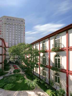 這是一家民國文化主題飯店,飯店由1918年、1953年、1985年三座不同時期建築構成。始建於1918年民國風情的名人客房,突顯東方古典的懷舊情調;飯店老樓是名人居,當年陳獨秀、蔡元培、張學良、白崇禧、胡適、梅蘭芳等均曾在此下榻。如今,飯店客房都以這些名人的名字命名。歐陸經典風格的花園與“老房子1918咖啡廳”相得益彰,將獨有的懷舊韻味和飯店悠久的歷史表現得淋漓盡致,是您商務旅遊的理想居所。