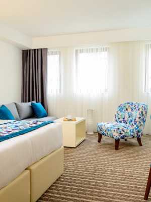 Hotel Colors Inn Sarajevo飯店距離薩拉熱窩(Sarajevo)市中心有200米,設有現代化的傢俱布置和色彩鮮豔且簡約的裝飾。飯店提供無線網絡連接,距離熱鬧的Baščaršija區有300米。 飯店的客房提供一台平面有線電視、空調和迷你吧。私人浴室設有淋浴,還配備了吹風機和毛巾。 Colors Inn Sarajevo Hotel飯店設有24小時前台,並提供包含在房價內的自助早餐。飯店內免費停車場。各種咖啡館和餐館都位於飯店附近。 飯店距離中央公共汽車和火車站都有1公里,距離薩拉熱窩機場(Sarajevo Airport)有13公里,距離上亞霍里納(Jahorina)的滑雪場有30公里。