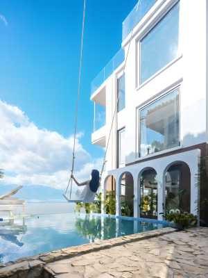 飯店位於大理海東鎮。坐山面海,一線海景。蒼山洱海盡收眼底。觀日出看日落,數星星。人間仙境。飯店擁有北歐風格。