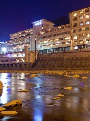 該飯店位於下呂富士山腹上,佇立在高台之上,俯瞰著下呂溫泉街。