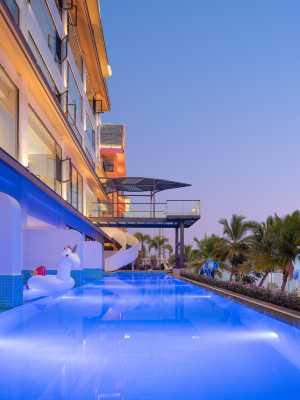飯店五樓擁有花園式空中水樂園,水上游樂場、空中無邊際游泳池、養生泡池、SPA、健身房、水上民族歌舞表演等休閒娛樂設施應有盡有。