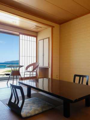 從12間海景房,都可看到白沙青松構成的長沙灘。12間客房內全部設有露天風呂(天然溫泉KIrara)。頂層5樓客房為洋式房。 null