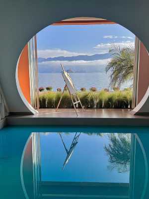 民宿擁有觀景水池,天空之境,水天一色盡收眼底。1樓公共區域寬敞明亮,讀書、品酒、飲茶、咖啡,怡然自得的慢生活優哉遊哉,也可與天南海北的有緣人圍坐摩梭火塘暢聊人生,分享彼此的故事。