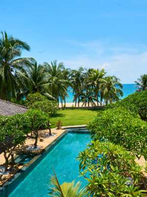 飯店擁有多間舒適而不同風格的客房及10棟園林別墅,飯店具有珍藏原生海岸與經典臨海建築相得益彰,展現古典與現代、人工與自然融合之美,讓您感受無與倫比的熱帶自然海島風光。