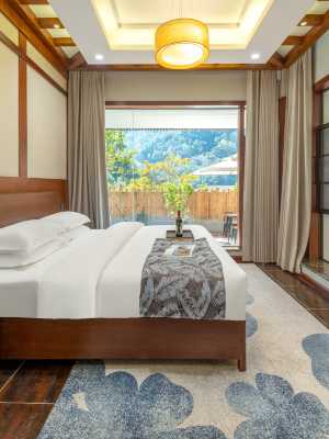 麓川璞隱半山別墅溫泉康養飯店位於龍川江峽谷之中,四周被原始森林和青山環抱,負氧離子含量極高,環境清幽,是真正的'天然氧吧'和避世療養勝地。