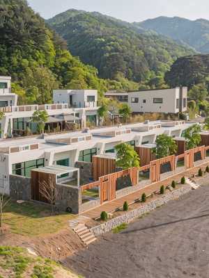 Muju Log House Pension坐落於茂朱,配備免費WiFi、空調、露台和餐廳,距離韓朋儒觀景亭有19公里,距離Donahm Seowon有37公里。內部提供私人停車位。 房間鋪有鑲木地板,配有帶冰箱的設施齊全的廚房、用餐區、帶衛星頻道的平板電視以及帶淋浴設施和免費洗浴用品的私人浴室。部分房間擁有休息區和/或陽台。 如果客人想探索該地區,可以在周邊地區體驗滑雪和垂釣。這家度假屋可以安排滑雪設備租賃服務。 Muju Log House Pension距離Cheonbansan Recreational Forest有37公里,距離Yeongdong Catholic Church有42公里。大邱國際機場距離住宿有118公里。