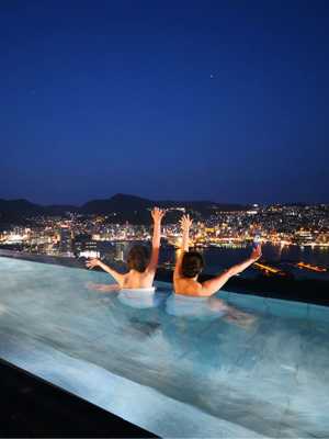 從溫泉、客房、餐廳。俯瞰世界新三大夜景的景觀溫泉飯店
