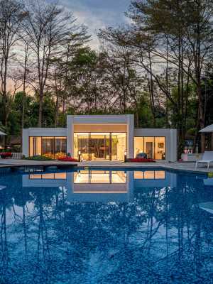 這是一家以度假、休閒、旅遊、養生為主題,同時能夠滿足商務/公務接待、會議、培訓、團建活動需求,服務廣大市民的花園式豪華舒適飯店,設計按照新中式的風格設計,給客人清新一亮的歸屬感與體驗感;飯店共有客房一百餘間。