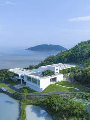 度假村本身建成在懸崖之上,森林之中,依山傍水的環境將自然的美完整的呈現出來,讓建築完全融於景觀,開窗出戶馬上望到海天一色的美景,建築與人倒影穿梭在水面之中,做到了一種真正意義上的無縫融合,主人巧妙地利用透明玻璃來鑄構外立面,讓室內外更加通透明亮、一覽無餘,保持整體建築的活力和詩意,賦予來到的客人不同的心靈享受。
