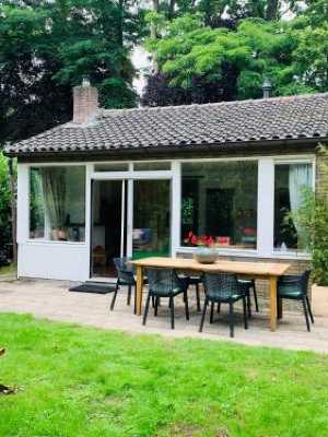 這家度假屋提供露台,享有花園景,擁有2間臥室、起居室、平板電視、帶冰箱和烤箱的設施齊全的廚房以及1間帶淋浴設施的浴室。這家度假屋還配備休息區、洗衣機以及1間帶免費洗浴用品的浴室。