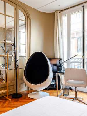 這套三居室公寓風格獨特,充滿復古氣息,色彩絢麗,藝術氣息濃郁,令人歎為觀止。帶有戲劇效果?藝術畫廊的氛圍?可以看到巴黎聖母院的房間?這套位於巴黎第四區歷史中心瑪黑區的宏偉住宅擁有這一切,甚至更多。這套住宅位於古雅的西岱島,可能是巴黎最令人嚮往的飛地之一。這裡曾是著名藝術家和作家的最愛,如今擁有無與倫比的巴黎氛圍,擁有別致的精品店、花園和熱鬧的咖啡館文化,河對岸就是標誌性的聖路易島。起居和用餐區 嶄露頭角的作家和藝術家將在優雅、明亮的客廳中沉思,激發他們的創造力。柔和的藍色背景、華麗的天鵝絨傢俱、不拘一格的藝術品和精緻的鑲木地板,營造出浪漫主義、沙龍文化和奢華的舊時代的場景。法式門通向餐廳,餐廳牆壁為鮮豔的硃紅色,玻璃吊燈凸顯了時代魅力。