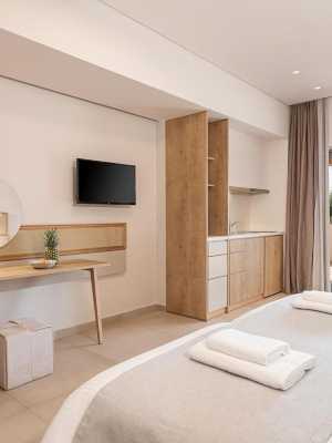 Elafonisi Resort公寓式飯店的所有單元均裝飾簡單,可通往帶傢俱的陽台。每間都配有冰箱和書桌,部分單元還設有小廚房。私人浴室提供免費洗浴用品、吹風機及淋浴。部分單元享有利比亞海(Libyan Sea)景緻。
