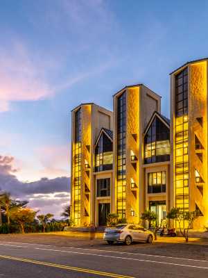 建築如珊瑚,融於海岸的背景 曲折如海岸線、如珊瑚的表面,我們以重複與錯置的白牆語彙,創造豐富卻內斂的建築表情。 建築位於面海的複雜環境中,選擇以簡約白牆弱化自身,成為海岸生活的背景,讓在地紋理主導視覺。 光線與海色隨時間穿梭牆縫,構築層層漸變的風景,削減干擾,形塑寧靜氛圍。 延伸至戶外的垂直白牆,吸納自然氣息與旅人活動,柔化南台灣的烈陽與海風,在建築內外之間,創造親近自然的緩衝空間。