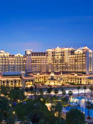 飯店坐落於虹橋商務區腹地,毗鄰上海國家會展中心,地理位置得天獨厚。飯店以西班牙格拉納達的阿爾罕布拉式建築風格為藍本建造,細節設計考究,處處洋溢著濃郁的地中海浪漫風情,成為繁華都市中一方靜溢的世外桃源。