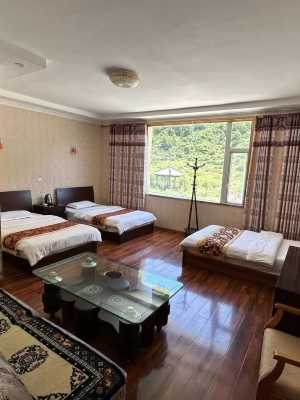 飯店內設:豪華套房、氧氣房、豪華標準間、豪華大標間、觀景房、親子房、房間結構合理,南北通透,光線充足。房內布置溫馨舒適,傢俱豪華且低調,設有空調、數字電視、電話、免費寬帶,並提供24小時熱水淋浴。周邊有千畝薰衣草基地,春暖花開,香薰之中,前可覽瞰無際眩紫,後可感受原汁原味的藏寨風情。