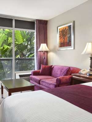 飯店位於硅谷的優越地段毗鄰主要的高科技園區,四周茂盛的熱帶園林、精美的馬賽克裝飾、優美的壁畫以及手工製作的傢俱共同營造出充滿活力的地中海氛圍。