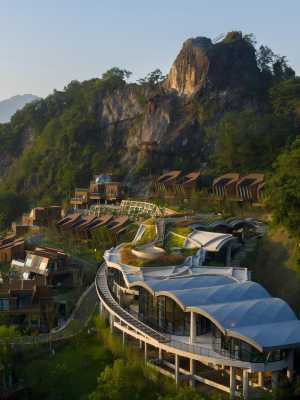 飯店建立在一個山水詩意之地,坐落於綿延不絕的八曲山分水江上。飯店純白的牆體設計,增加了建築的線條感,隱於青山綠水之間顯得低調而高級。草坪露營,天幕下午茶,吾倉融合餐廳、酒吧、MOJ咖啡廳、瑜伽房,健身房,兒童遊樂區、江景無邊泳池等一應俱全,幾乎能夠滿足你對於理想山居生活的所有想象。