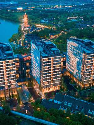 堤上度假飯店位於浙江省桐鄉市,地處江浙滬“金三角”之地、杭嘉湖平原腹地,緊鄰京杭大運河,坐享西柵古鎮與運河美景,飯店設計追求自然與人居的完美融合,傳統與現代的碰撞,營造出曠達、閒適的詩意與高雅品位。飯店佔地總面積3.9萬㎡,建築面積10.15萬㎡,精裝修面積6.93萬㎡,集主題客房、康體健身房、茶吧、咖啡吧、全日制餐廳、日料餐廳、行政酒廊、宴會廳、空中花園、室內外泳池、威士忌酒吧等於一體的綜合型奢華度假飯店。
