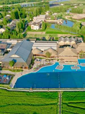 堤上度假飯店位於浙江省桐鄉市,地處江浙滬“金三角”之地、杭嘉湖平原腹地,緊鄰京杭大運河,坐享西柵古鎮與運河美景,飯店設計追求自然與人居的完美融合,傳統與現代的碰撞,營造出曠達、閒適的詩意與高雅品位。飯店佔地總面積3.9萬㎡,建築面積10.15萬㎡,精裝修面積6.93萬㎡,集主題客房、康體健身房、茶吧、咖啡吧、全日制餐廳、日料餐廳、行政酒廊、宴會廳、空中花園、室內外泳池、威士忌酒吧等於一體的綜合型奢華度假飯店。