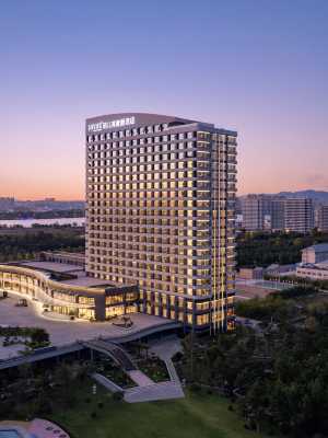 飯店位於榮成市東部核心區,海灣北路518號,東臨齊魯最美海岸線“榮成濱海公園”,西靠櫻花湖,周圍美麗的自然風光環繞,地理位置優越,交通便捷。飯店佔地5萬㎡,建築風格結合海洋自然元素,靈感源於海浪、岩石與植被的光影變化,展現了建築與海洋的完美融合,是一座集政商宴會、濱海休閒和親子度假為一體的綜合型度假飯店。飯店擁有高星級客房,推窗即可欣賞一線海景。此外,飯店設有柏拉圖酒吧,提供各式飲品、酒水。會議設施完善,主樓設有1000㎡的大型宴會廳、600㎡的中型宴會廳和300㎡的小型宴會廳,另有5個多功能會議室,能夠滿足各類會議和宴會的需求。餐飲業態豐富,設有中餐包廂、PARTY房、日料餐廳、自助餐廳、海鮮主題餐廳。戶外區域設有寬闊草坪、戶外泳池和黃金沙灘。飯店內部配備兒童樂園、健身房、棋牌室、高爾夫練習場和雪茄吧等娛樂設施。