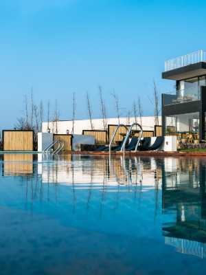 新昌鄉悅雲端民宿管理有限公司,品牌名稱“山中來信”,地處新昌縣東茗鄉下岩貝村。從杭紹台高速下來後,20分鐘車程可抵達。距離“嵊州新昌”高鐵站30分鐘車程。30分鐘可到達新昌穿岩十九峰景區、大佛寺景區,新昌南街碳水王國等景點。建築具有鮮明的設計感,視野大氣磅礴,門前的無邊泳池與對面的十九峰景區遙相呼應,形成絕妙的自然景觀而成為遊客的重要打卡拍照點。這裡以雲海和夕陽最為壯觀。一到秋天或早晚溫差產生較大變化時,門前的大峽谷鋪上厚厚的雲層,蔚為壯觀。夕陽的幻影,與雲彩之間產生各種形狀與變化,大有“落霞與孤鶩齊飛,秋水共長天一色”之感。站在門前平台之上,一目是十九山峰,萬畝茶園,疊層梯田,韓妃江蜿蜒,“歐米茄”大峽谷,炊煙裊裊的遠處的村落,與時而路過的雲捲雲舒,形成少有的大自然風光。如此景色,區別於中國其他的地方的山水,更多了豐富的內容。