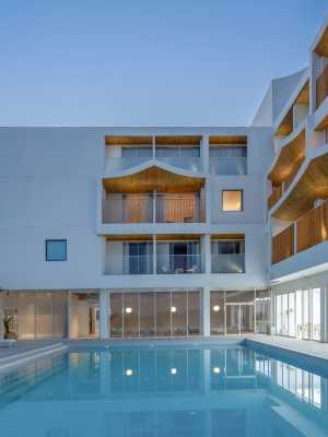 天空之院,由建築師徐小萌老師進行設計,已經斬獲了眾多國際大獎,也是焦作榮獲國際大獎的建築。設計突破了飯店房間的常規模式,以人的體驗為中心,創造出前所未有的空間感受。在每個房間里,視線以下的部分全被遮擋,視線以上的部分完全打開,成為私密的微型庭院。客人完全看不到周邊的嘈雜環境,只會感受到天空、陽光和山景。房間的開口像畫卷一樣展開,陽光在不同的時間灑在弧形牆面上,都會產生不同的光影效果。這個“掀”的設計手法,滲透到了整個飯店設計的方方面面。從室外的景觀,到室內的牆面;從導視的圖案,到房間抽屜的拉手。