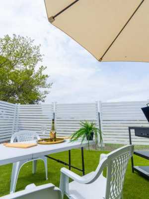 這家空調度假屋配有3間臥室、起居室、帶冰箱和電熱水壺的設施齊全的廚房以及1間帶坐浴盆和淋浴設施的浴室。1間浴室配有熱水浴池,也為客人提供免費洗浴用品,提供毛巾和床上用品。