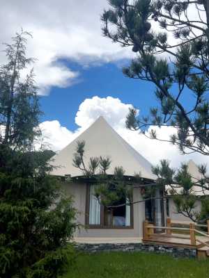 朗欽帳篷營地——甘南藏域的野奢祕境營地概覽:朗欽帳篷營地位於甘南藏族自治州卓尼縣,坐擁壯麗的高原風光與純淨的藏地文化,是一家按高星級標準打造的沉浸式野奢度假勝地。這裡將原始自然與奢華體驗完美融合,為每一位旅人提供遠離喧囂的“野”與“奢”的獨特邂逅——白天徜徉於雪山草甸之間,夜晚棲息於星空帳篷之下,感受藏域祕境的詩意與寧靜。 “朗欽”之名(藏語意為“象”),象徵力量與祥瑞,寓意營地如巍峨雪山般守護您的旅程,帶來吉祥與安寧。 營地配備多種野奢帳篷房型,均以環保材質與藏式美學匠心打造: 星空穹頂太空艙:全景天窗設計,夜晚躺觀高原璀璨銀河; 藏式風情帳篷:手工編織毯、銅器裝飾,沉浸式體驗藏族生活美學; 帳篷套房:推窗即覽私人湖景,獨享靜謐水岸時光。 所有帳篷均配備地暖系統、高端衛浴及定製傢俱,在粗獷自然中保障舒適品質。 藏地文化沉浸式體驗 :騎馬漫遊草原、射箭場體驗傳統競技,或參與藏香製作、祈福等特色活動; 自然野趣探索:營地內設人工湖垂釣、環湖徒步道,周邊可前往車巴溝探祕原始森林,或邂逅珍稀野生動物; 星空篝火晚會圍爐夜話,品嚐藏式烤全羊,與族人共跳鍋莊舞。 朗欽餐廳主打“高原原味”,提供藏式犛牛肉火鍋、酥油茶、糌粑等傳統美味,同時融合川粵菜系,滿足多元味蕾需求。湖畔酒吧供應特調青稞酒與高原咖啡,伴您靜賞落日餘暉。 配備多功能帳篷會議室,可承接高端團建、文化沙龍及藏式婚禮定製服務,專業團隊提供活動策劃與民俗儀式指導。 在朗欽,與雪山對話,與星空共眠——開啟您的藏地野奢傳奇。